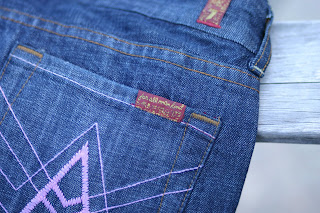 Here are some pictures of my fun 7 For All Mankind Jeans project. I bought them, cut them up, and made 3 pairs of 18 inch doll jeans for American Girl dolls. Maybe 7 For All Mankind should consider making jeans for 18 inch dolls!!